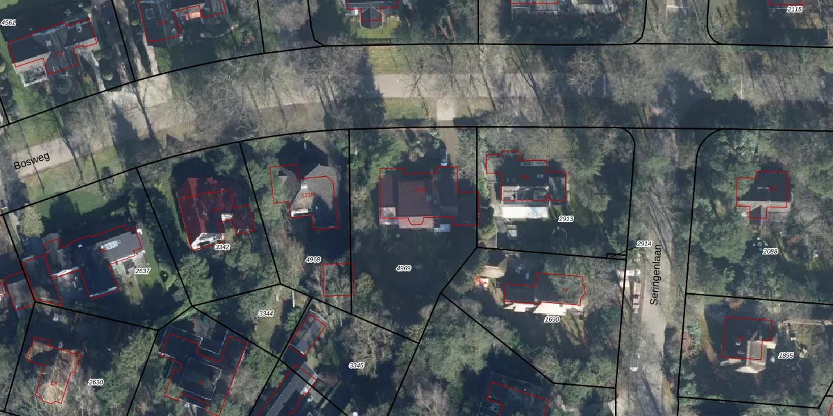 Het perceel waarop Bosweg 127-A staat heeft een oppervlakte van 1334 m². Dit is een zeer groot perceel. De perceeloppervlakte wordt geregistreerd door het Kadaster. Gedetailleerde informatie over de maten van dit perceel kunt u vinden in het rapport Kadastrale kaart met maatvoering van Bosweg 127-A.