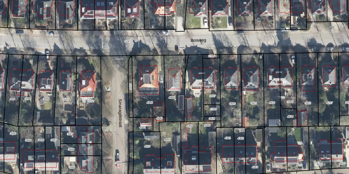 Het perceel waarop Bosweg 43-B staat heeft een oppervlakte van 439 m². Dit is een groot perceel. De perceeloppervlakte wordt geregistreerd door het Kadaster. Gedetailleerde informatie over de maten van dit perceel kunt u vinden in het rapport Kadastrale kaart met maatvoering van Bosweg 43-B.