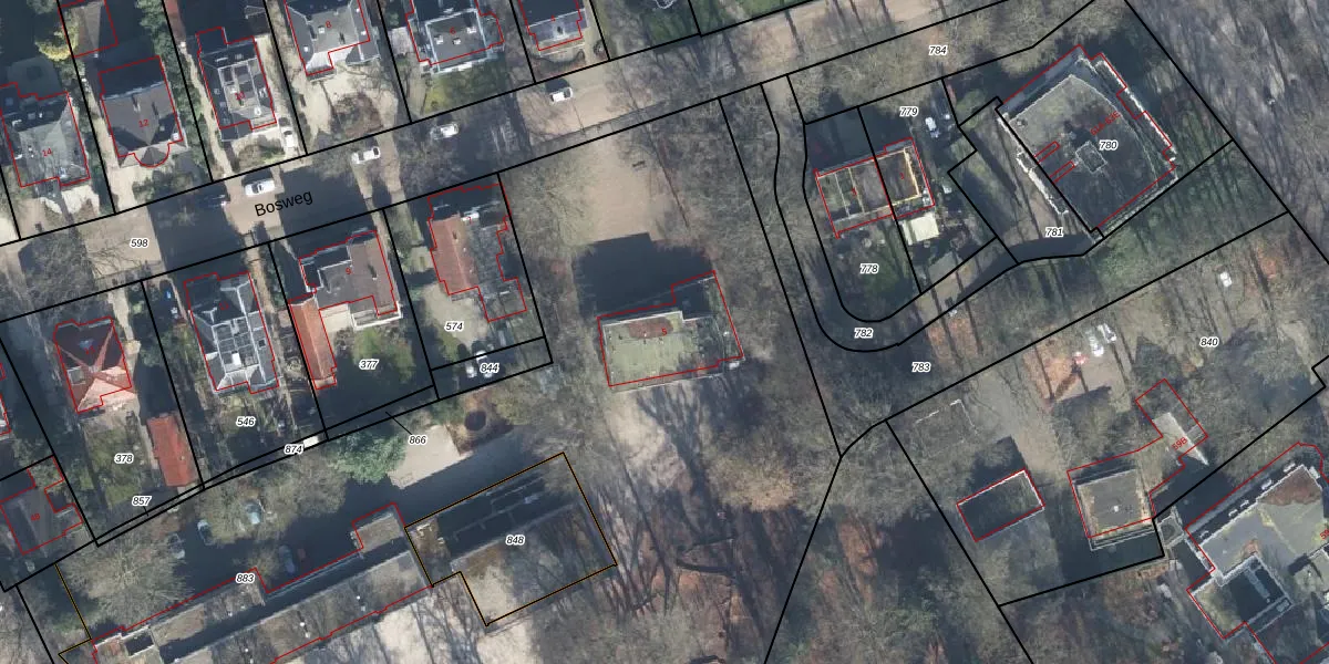 Het perceel waarop Bosweg 5 staat heeft een oppervlakte van 8910 m². Dit is een zeer groot perceel. De perceeloppervlakte wordt geregistreerd door het Kadaster. Gedetailleerde informatie over de maten van dit perceel kunt u vinden in het rapport Kadastrale kaart met maatvoering van Bosweg 5.