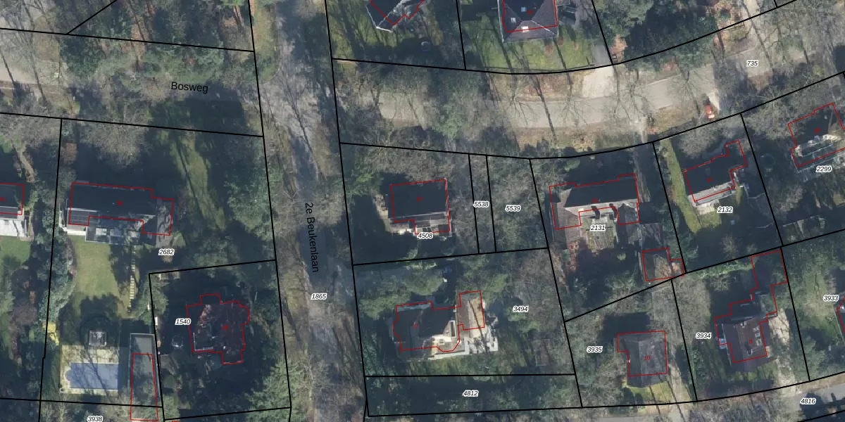 Het perceel waarop Bosweg 97 staat heeft een oppervlakte van 796 m². Dit is een groot perceel. De perceeloppervlakte wordt geregistreerd door het Kadaster. Gedetailleerde informatie over de maten van dit perceel kunt u vinden in het rapport Kadastrale kaart met maatvoering van Bosweg 97.