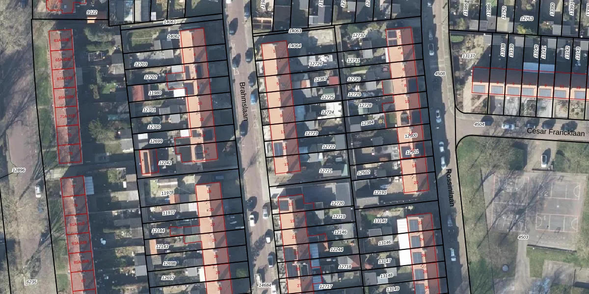 Het perceel waarop Brahmslaan 13 staat heeft een oppervlakte van 155 m². Dit is een middelgroot perceel. De perceeloppervlakte wordt geregistreerd door het Kadaster. Gedetailleerde informatie over de maten van dit perceel kunt u vinden in het rapport Kadastrale kaart met maatvoering van Brahmslaan 13.