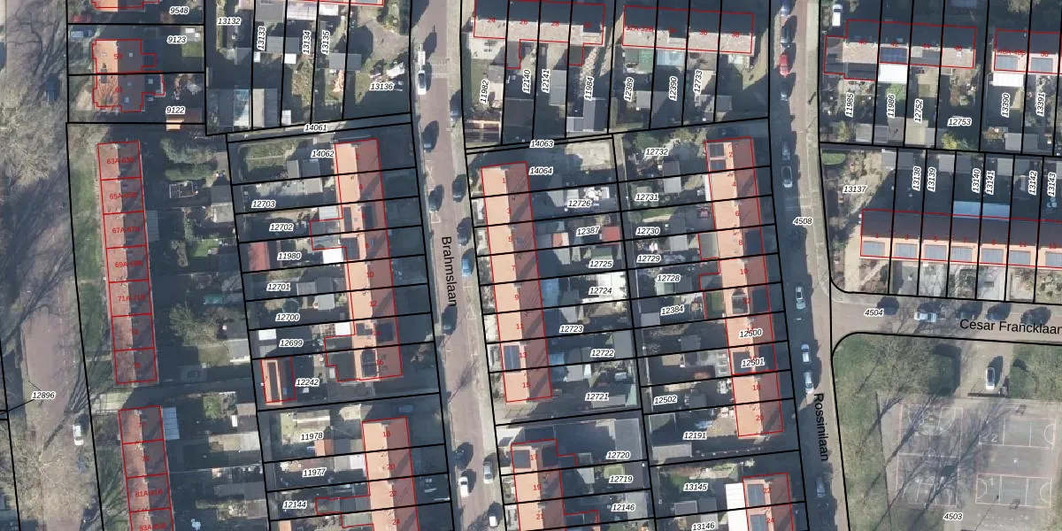 Gebruik de zoekbalk of klik op een perceel voor informatie over de adressen binnen dit perceel.