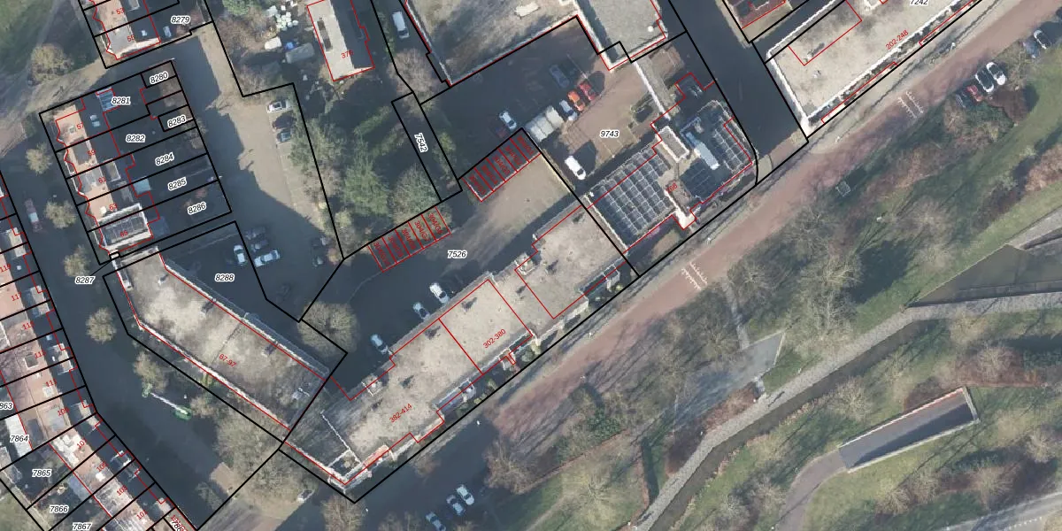 Het adres ligt op het perceel APD01-U-7526, dat zich in de kadastrale gemeente Apeldoorn bevindt. Het perceel is kleiner dan gemiddeld in Apeldoorn. Het perceel is 2258 m² groot, terwijl het gemiddelde ligt op 3523,3 m². De grootste perceeloppervlakte in de kadastrale gemeente is 4,54 km². De kleinste oppervlakte bedraagt 0 m². Er zijn 43 adressen aanwezig op het perceel. De huidige grenzen van het perceel zijn digitaal in de Basisregistratie Kadaster (BRK) geregistreerd op 21-06-2001.