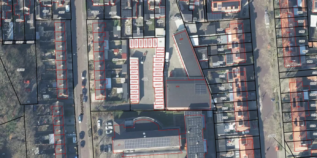 Buizerdweg 15-G22 is gelegen op kadastraal perceel APD01L4631. Deze kadastrale aanduiding is uniek en wordt gebruikt door het Kadaster om eigendomsrechten en andere zakelijke rechten vast te leggen. Het perceel maakt onderdeel uit van de kadastrale gemeente Apeldoorn.