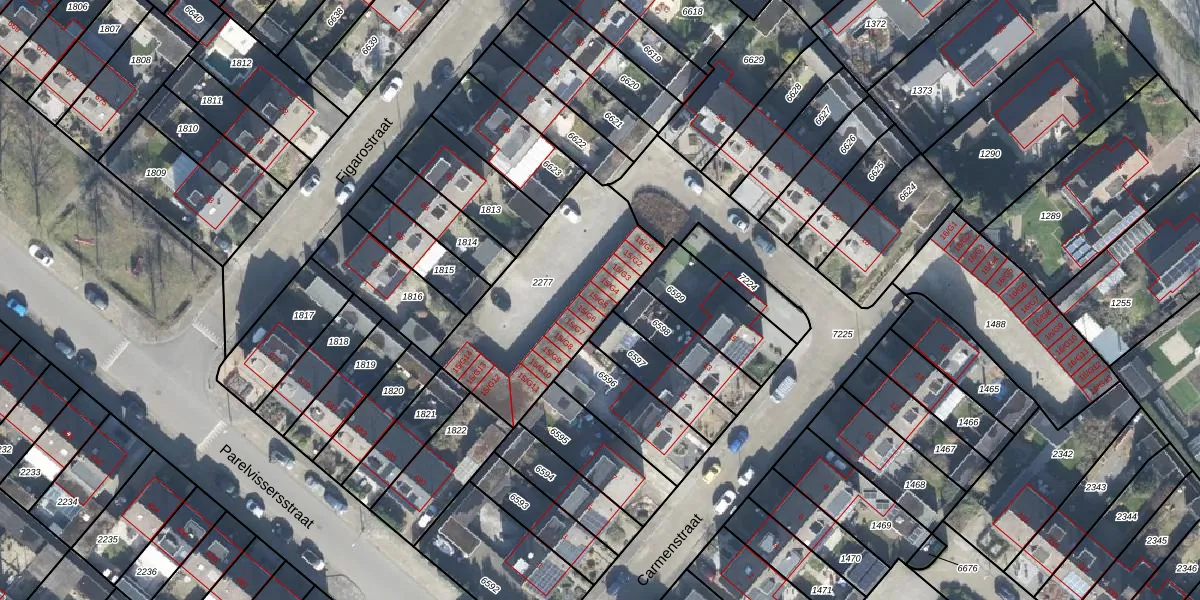 Het perceel waarop Carmenstraat 15-G5 staat heeft een oppervlakte van 740 m². Dit is een groot perceel. De perceeloppervlakte wordt geregistreerd door het Kadaster. Gedetailleerde informatie over de maten van dit perceel kunt u vinden in het rapport Kadastrale kaart met maatvoering van Carmenstraat 15-G5.