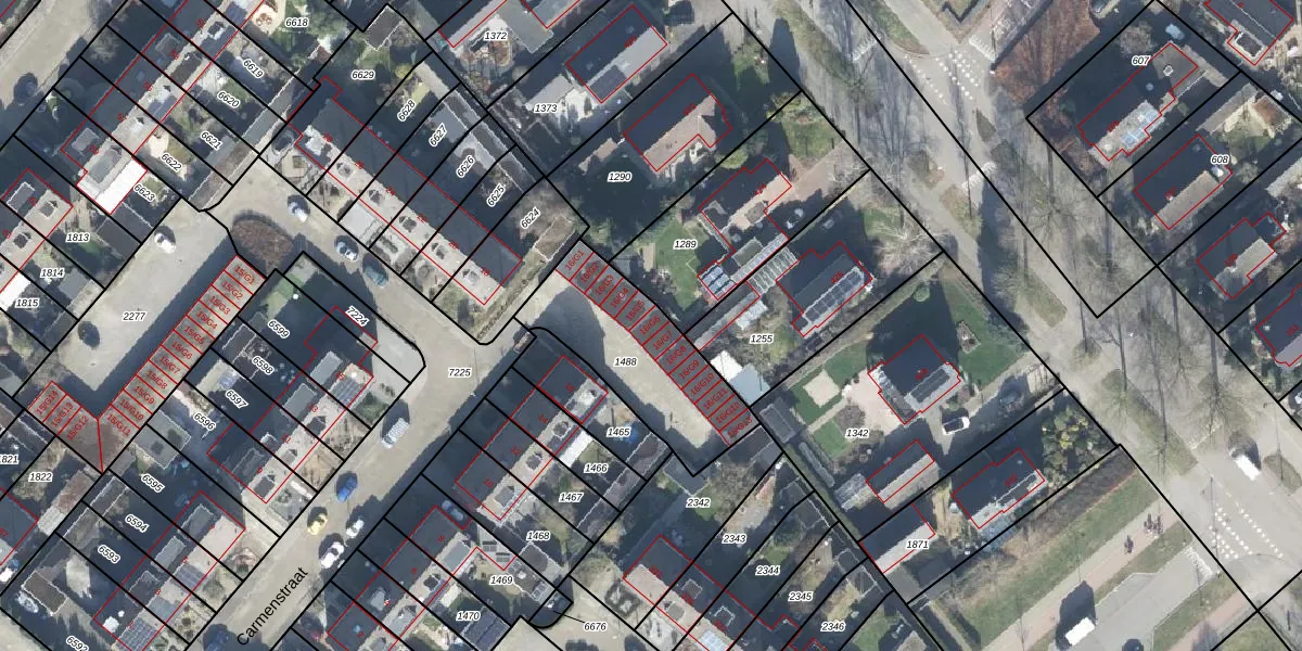 Het perceel waarop Carmenstraat 16-G6 staat heeft een oppervlakte van 540 m². Dit is een groot perceel. De perceeloppervlakte wordt geregistreerd door het Kadaster. Gedetailleerde informatie over de maten van dit perceel kunt u vinden in het rapport Kadastrale kaart met maatvoering van Carmenstraat 16-G6.