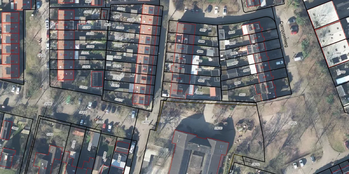 Carrouselweg 102 is gelegen op kadastraal perceel APD01L9903. Deze kadastrale aanduiding is uniek en wordt gebruikt door het Kadaster om eigendomsrechten en andere zakelijke rechten vast te leggen. Het perceel maakt onderdeel uit van de kadastrale gemeente Apeldoorn.