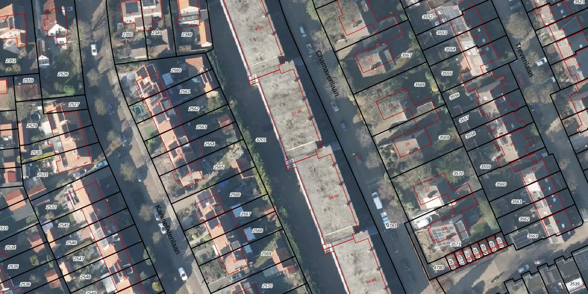 Het perceel waarop Chamavenlaan 36 staat heeft een oppervlakte van 3797 m². Dit is een zeer groot perceel. De perceeloppervlakte wordt geregistreerd door het Kadaster. Gedetailleerde informatie over de maten van dit perceel kunt u vinden in het rapport Kadastrale kaart met maatvoering van Chamavenlaan 36.