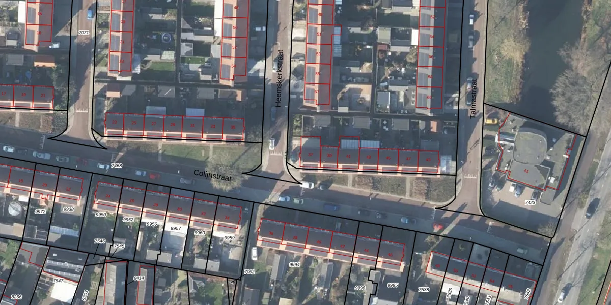 Het perceel waarop Colijnstraat 37 staat heeft een oppervlakte van 7235 m². Dit is een zeer groot perceel. De perceeloppervlakte wordt geregistreerd door het Kadaster. Gedetailleerde informatie over de maten van dit perceel kunt u vinden in het rapport Kadastrale kaart met maatvoering van Colijnstraat 37.
