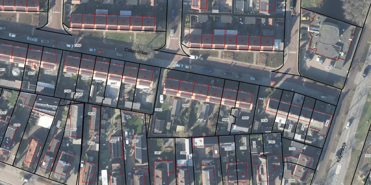 Het perceel waarop Colijnstraat 38 staat heeft een oppervlakte van 1246 m². Dit is een zeer groot perceel. De perceeloppervlakte wordt geregistreerd door het Kadaster. Gedetailleerde informatie over de maten van dit perceel kunt u vinden in het rapport Kadastrale kaart met maatvoering van Colijnstraat 38.