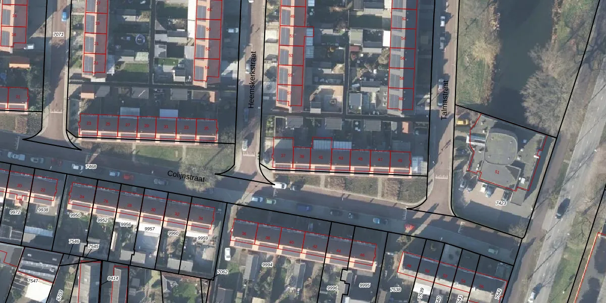 Het perceel waarop Colijnstraat 39 staat heeft een oppervlakte van 7235 m². Dit is een zeer groot perceel. De perceeloppervlakte wordt geregistreerd door het Kadaster. Gedetailleerde informatie over de maten van dit perceel kunt u vinden in het rapport Kadastrale kaart met maatvoering van Colijnstraat 39.