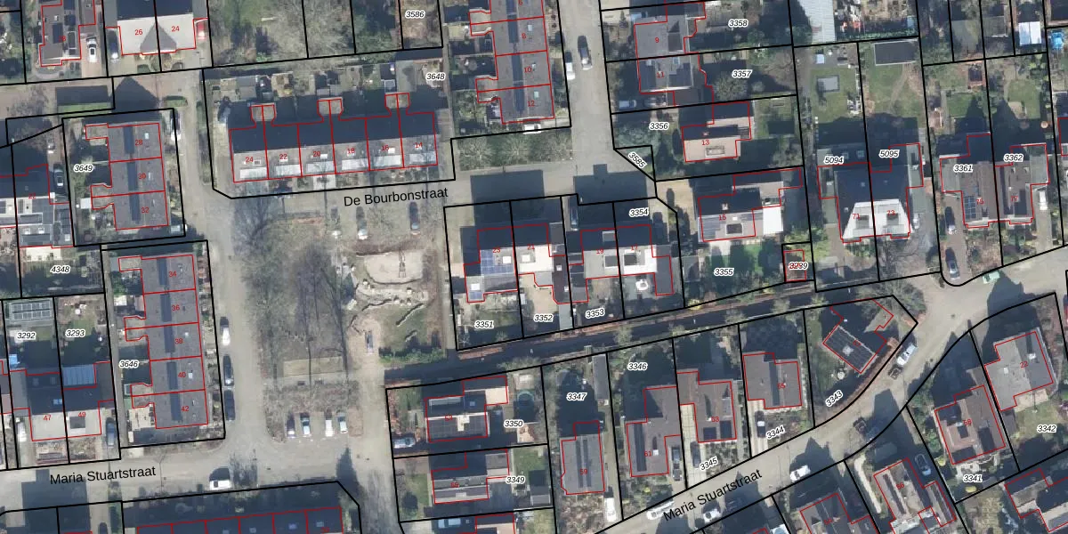 Het perceel waarop De Bourbonstraat 21 staat heeft een oppervlakte van 246 m². Dit is een middelgroot perceel. De perceeloppervlakte wordt geregistreerd door het Kadaster. Gedetailleerde informatie over de maten van dit perceel kunt u vinden in het rapport Kadastrale kaart met maatvoering van De Bourbonstraat 21.
