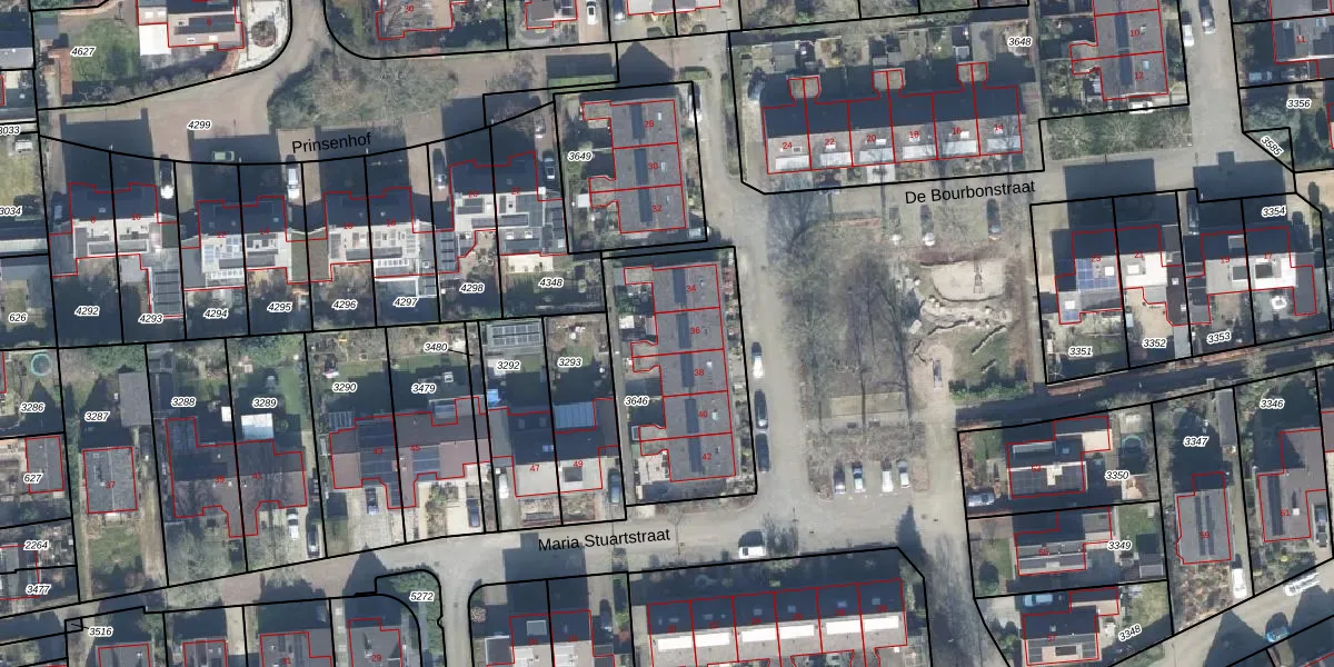 Het perceel waarop De Bourbonstraat 36 staat heeft een oppervlakte van 744 m². Dit is een groot perceel. De perceeloppervlakte wordt geregistreerd door het Kadaster. Gedetailleerde informatie over de maten van dit perceel kunt u vinden in het rapport Kadastrale kaart met maatvoering van De Bourbonstraat 36.