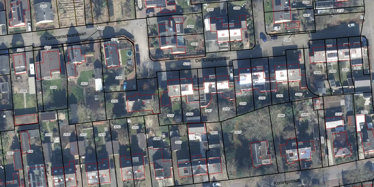Het perceel waarop De Colignystraat 21 staat heeft een oppervlakte van 281 m². Dit is een middelgroot perceel. De perceeloppervlakte wordt geregistreerd door het Kadaster. Gedetailleerde informatie over de maten van dit perceel kunt u vinden in het rapport Kadastrale kaart met maatvoering van De Colignystraat 21.
