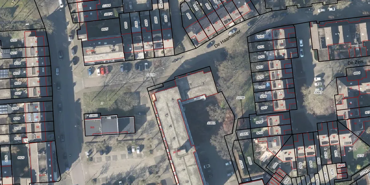 Het perceel waarop De Haarhamer 64 staat heeft een oppervlakte van 2555 m². Dit is een zeer groot perceel. De perceeloppervlakte wordt geregistreerd door het Kadaster. Gedetailleerde informatie over de maten van dit perceel kunt u vinden in het rapport Kadastrale kaart met maatvoering van De Haarhamer 64.