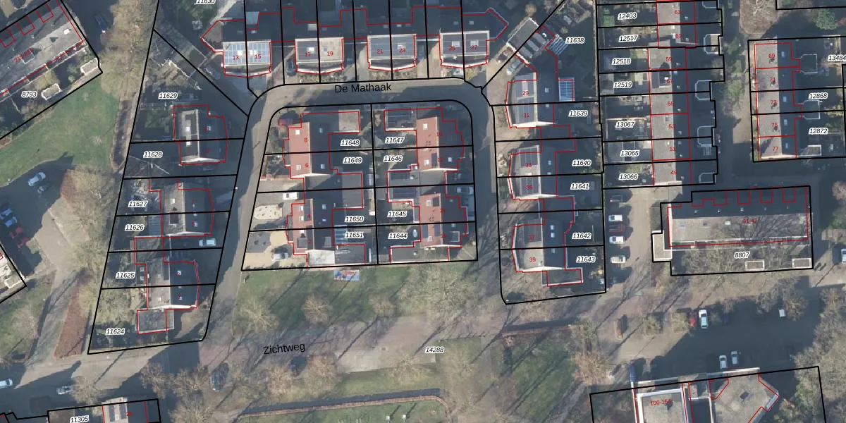Het perceel waarop De Mathaak 14 staat heeft een oppervlakte van 212 m². Dit is een middelgroot perceel. De perceeloppervlakte wordt geregistreerd door het Kadaster. Gedetailleerde informatie over de maten van dit perceel kunt u vinden in het rapport Kadastrale kaart met maatvoering van De Mathaak 14.