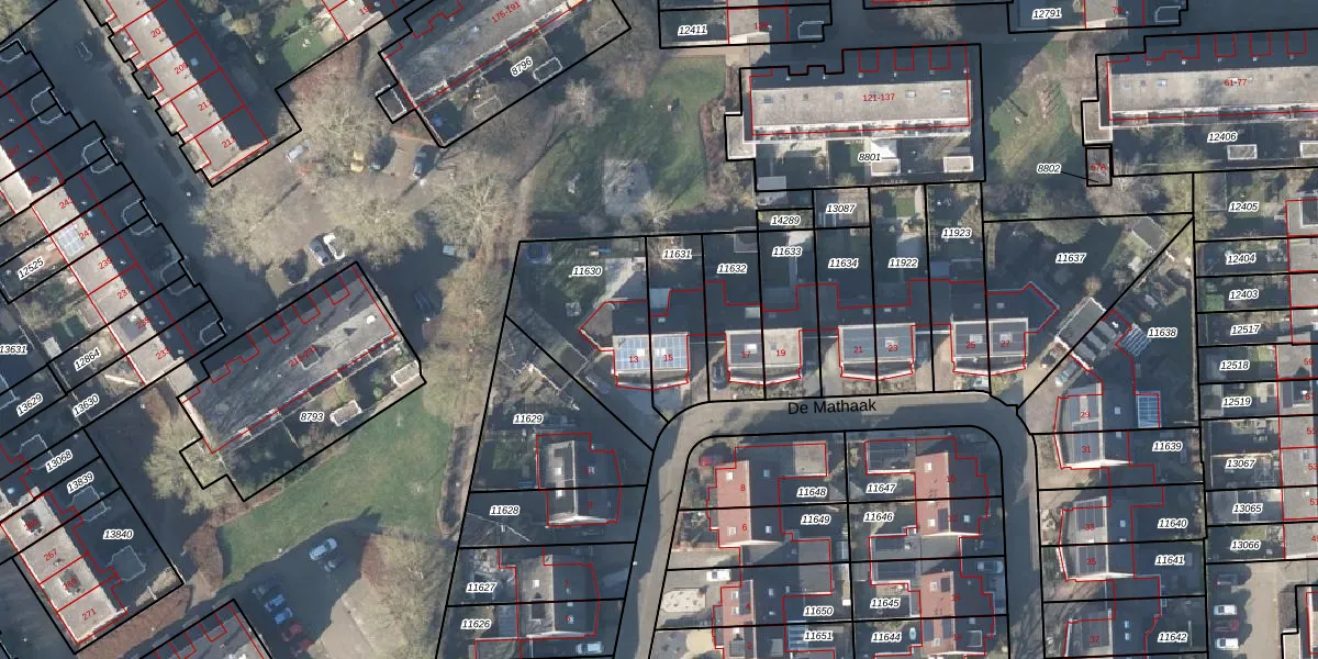 Het perceel waarop De Mathaak 15 staat heeft een oppervlakte van 227 m². Dit is een middelgroot perceel. De perceeloppervlakte wordt geregistreerd door het Kadaster. Gedetailleerde informatie over de maten van dit perceel kunt u vinden in het rapport Kadastrale kaart met maatvoering van De Mathaak 15.