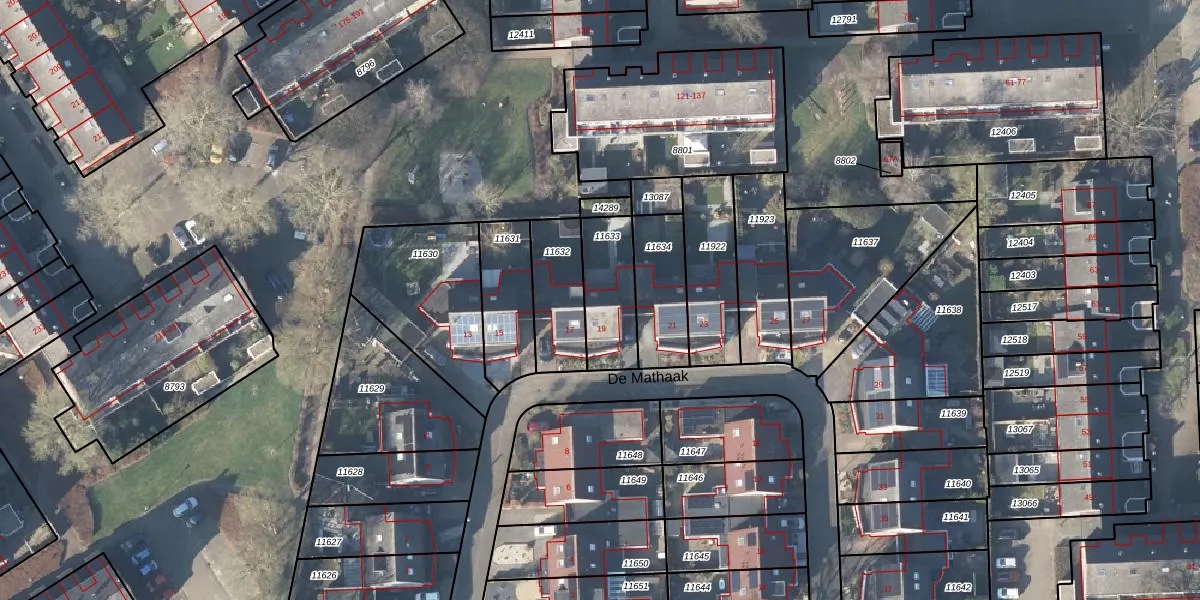 Gebruik de zoekbalk of klik op een perceel voor informatie over de adressen binnen dit perceel.