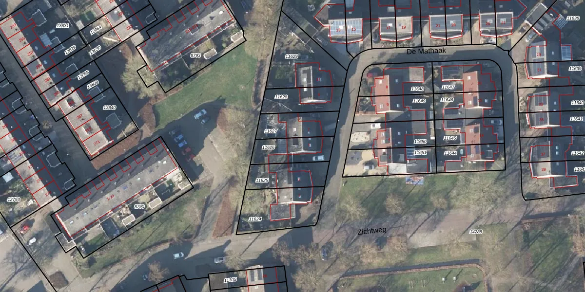 Gebruik de zoekbalk of klik op een perceel voor informatie over de adressen binnen dit perceel.