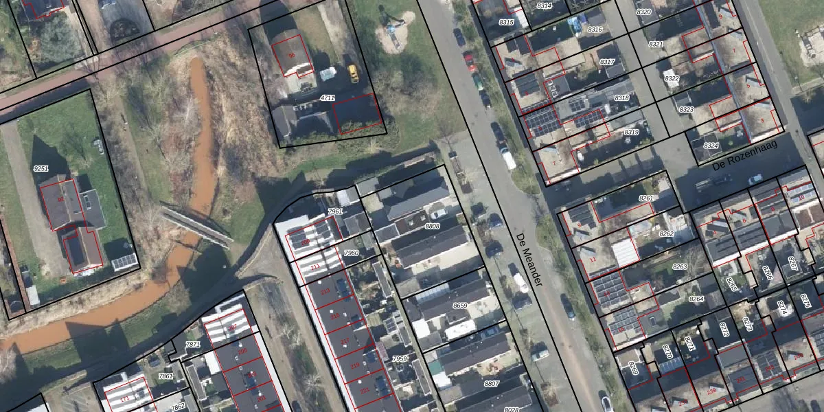 Het perceel waarop De Meander 10 staat heeft een oppervlakte van 590 m². Dit is een groot perceel. De perceeloppervlakte wordt geregistreerd door het Kadaster. Gedetailleerde informatie over de maten van dit perceel kunt u vinden in het rapport Kadastrale kaart met maatvoering van De Meander 10.