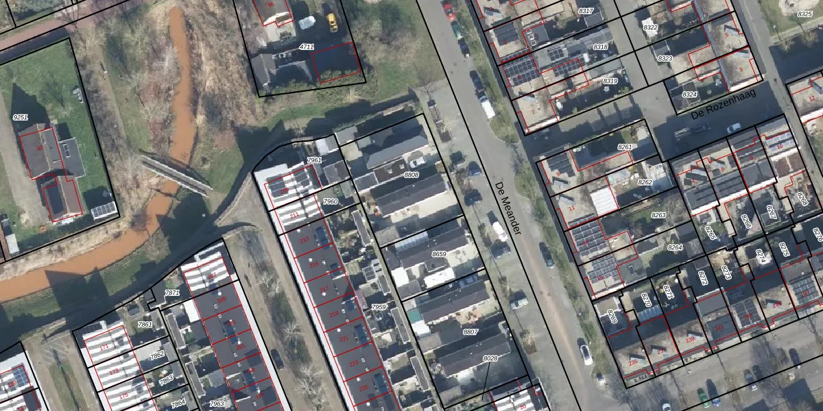 Het perceel waarop De Meander 12 staat heeft een oppervlakte van 590 m². Dit is een groot perceel. De perceeloppervlakte wordt geregistreerd door het Kadaster. Gedetailleerde informatie over de maten van dit perceel kunt u vinden in het rapport Kadastrale kaart met maatvoering van De Meander 12.