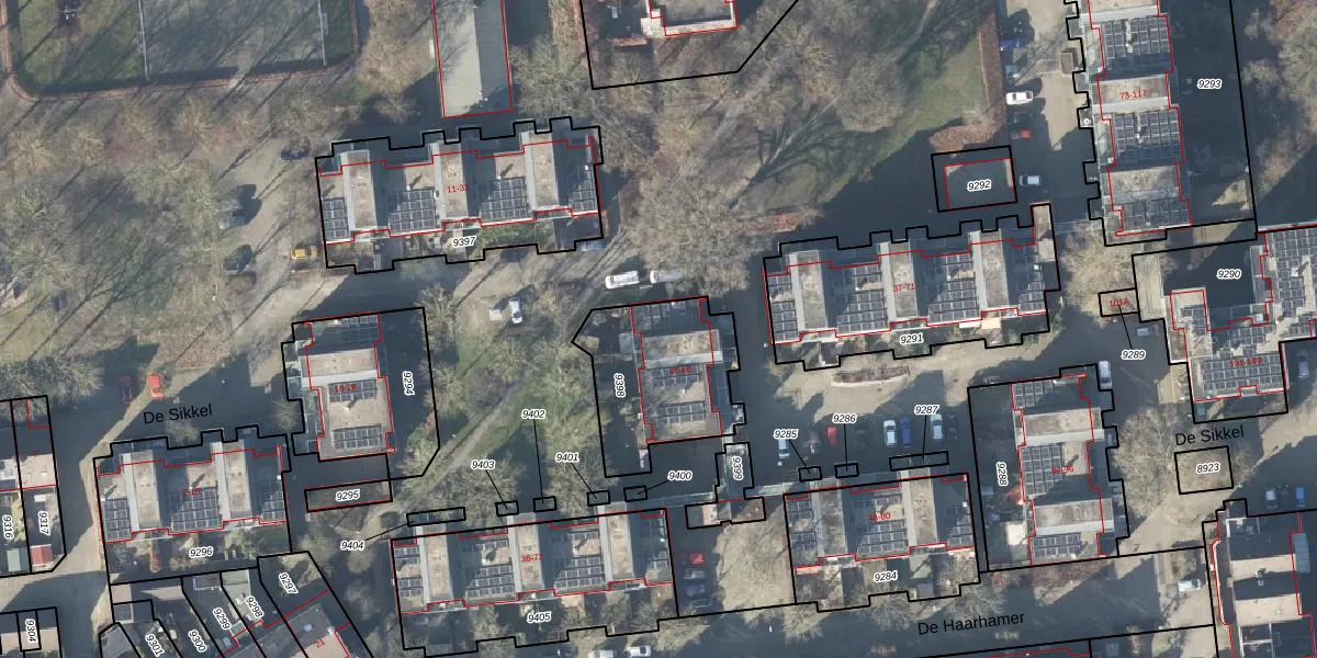 Het perceel waarop De Sikkel 56 staat heeft een oppervlakte van 481 m². Dit is een groot perceel. De perceeloppervlakte wordt geregistreerd door het Kadaster. Gedetailleerde informatie over de maten van dit perceel kunt u vinden in het rapport Kadastrale kaart met maatvoering van De Sikkel 56.