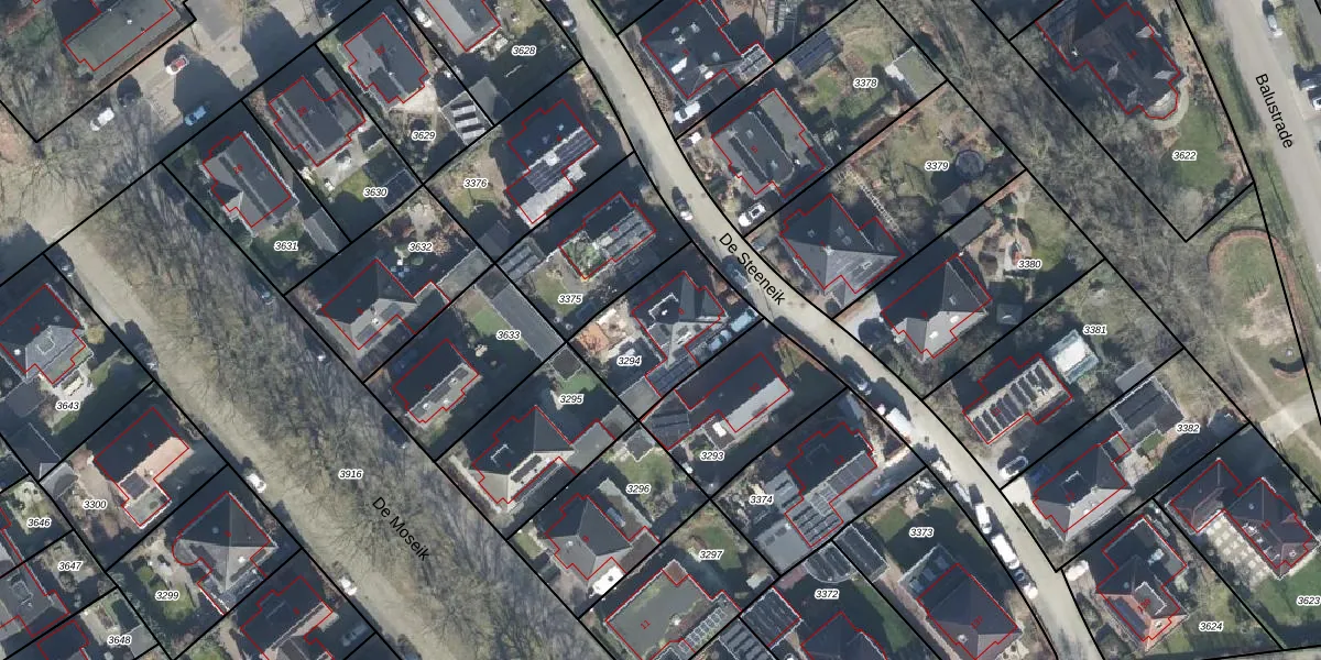 Het perceel waarop De Steeneik 8 staat heeft een oppervlakte van 388 m². Dit is een groot perceel. De perceeloppervlakte wordt geregistreerd door het Kadaster. Gedetailleerde informatie over de maten van dit perceel kunt u vinden in het rapport Kadastrale kaart met maatvoering van De Steeneik 8.
