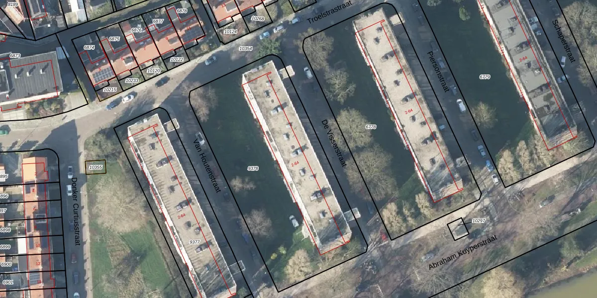 Het perceel waarop De Visserstraat 2-G4 staat heeft een oppervlakte van 2487 m². Dit is een zeer groot perceel. De perceeloppervlakte wordt geregistreerd door het Kadaster. Gedetailleerde informatie over de maten van dit perceel kunt u vinden in het rapport Kadastrale kaart met maatvoering van De Visserstraat 2-G4.