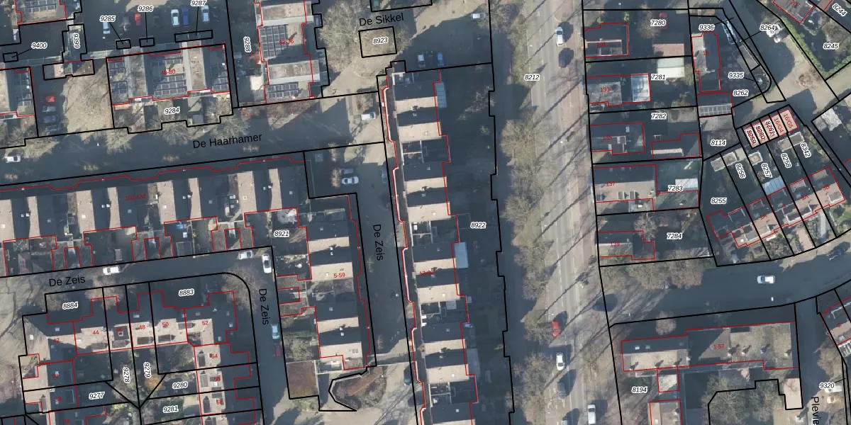 Het perceel waarop De Zeis 37 staat heeft een oppervlakte van 2297 m². Dit is een zeer groot perceel. De perceeloppervlakte wordt geregistreerd door het Kadaster. Gedetailleerde informatie over de maten van dit perceel kunt u vinden in het rapport Kadastrale kaart met maatvoering van De Zeis 37.