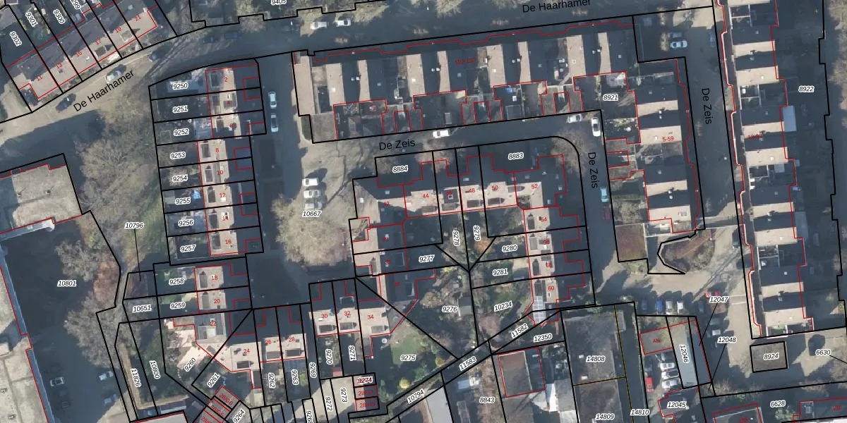 Het perceel waarop De Zeis 44 staat heeft een oppervlakte van 418 m². Dit is een groot perceel. De perceeloppervlakte wordt geregistreerd door het Kadaster. Gedetailleerde informatie over de maten van dit perceel kunt u vinden in het rapport Kadastrale kaart met maatvoering van De Zeis 44.
