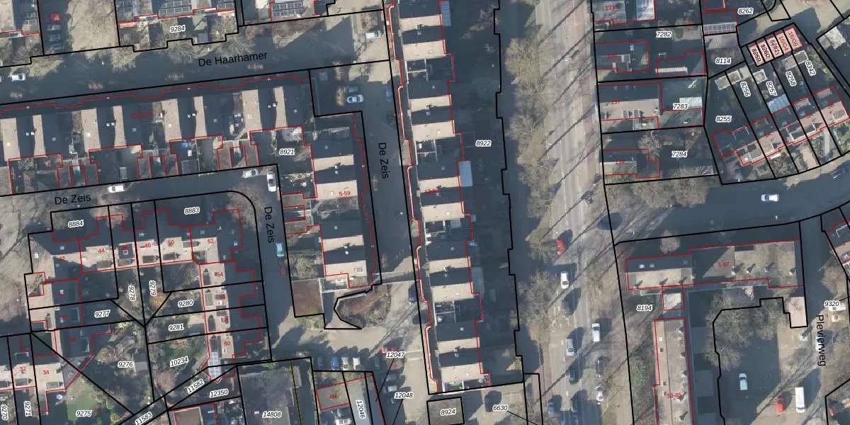 Het perceel waarop De Zeis 80 staat heeft een oppervlakte van 2297 m². Dit is een zeer groot perceel. De perceeloppervlakte wordt geregistreerd door het Kadaster. Gedetailleerde informatie over de maten van dit perceel kunt u vinden in het rapport Kadastrale kaart met maatvoering van De Zeis 80.