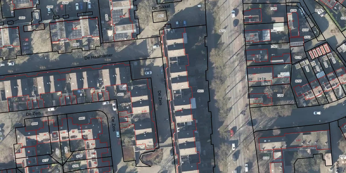 Het perceel waarop De Zeis 84 staat heeft een oppervlakte van 2297 m². Dit is een zeer groot perceel. De perceeloppervlakte wordt geregistreerd door het Kadaster. Gedetailleerde informatie over de maten van dit perceel kunt u vinden in het rapport Kadastrale kaart met maatvoering van De Zeis 84.