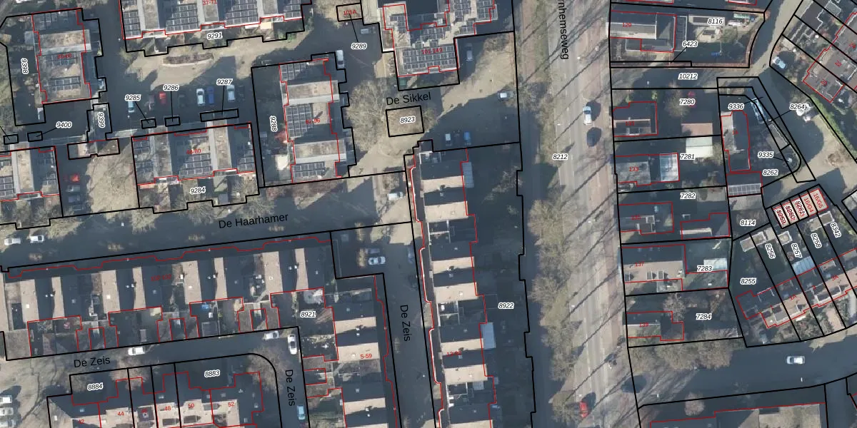 Het perceel waarop De Zeis 88 staat heeft een oppervlakte van 2297 m². Dit is een zeer groot perceel. De perceeloppervlakte wordt geregistreerd door het Kadaster. Gedetailleerde informatie over de maten van dit perceel kunt u vinden in het rapport Kadastrale kaart met maatvoering van De Zeis 88.