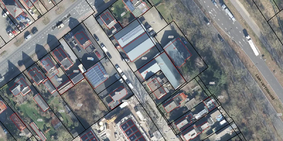 Het perceel waarop Dennenkamp 5 staat heeft een oppervlakte van 420 m². Dit is een groot perceel. De perceeloppervlakte wordt geregistreerd door het Kadaster. Gedetailleerde informatie over de maten van dit perceel kunt u vinden in het rapport Kadastrale kaart met maatvoering van Dennenkamp 5.