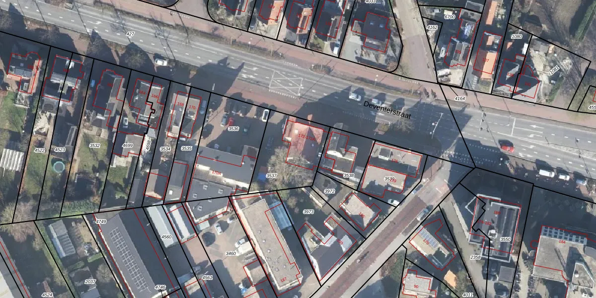 Deventerstraat 172-A is gelegen op kadastraal perceel APD01M3537. Deze kadastrale aanduiding is uniek en wordt gebruikt door het Kadaster om eigendomsrechten en andere zakelijke rechten vast te leggen. Het perceel maakt onderdeel uit van de kadastrale gemeente Apeldoorn.
