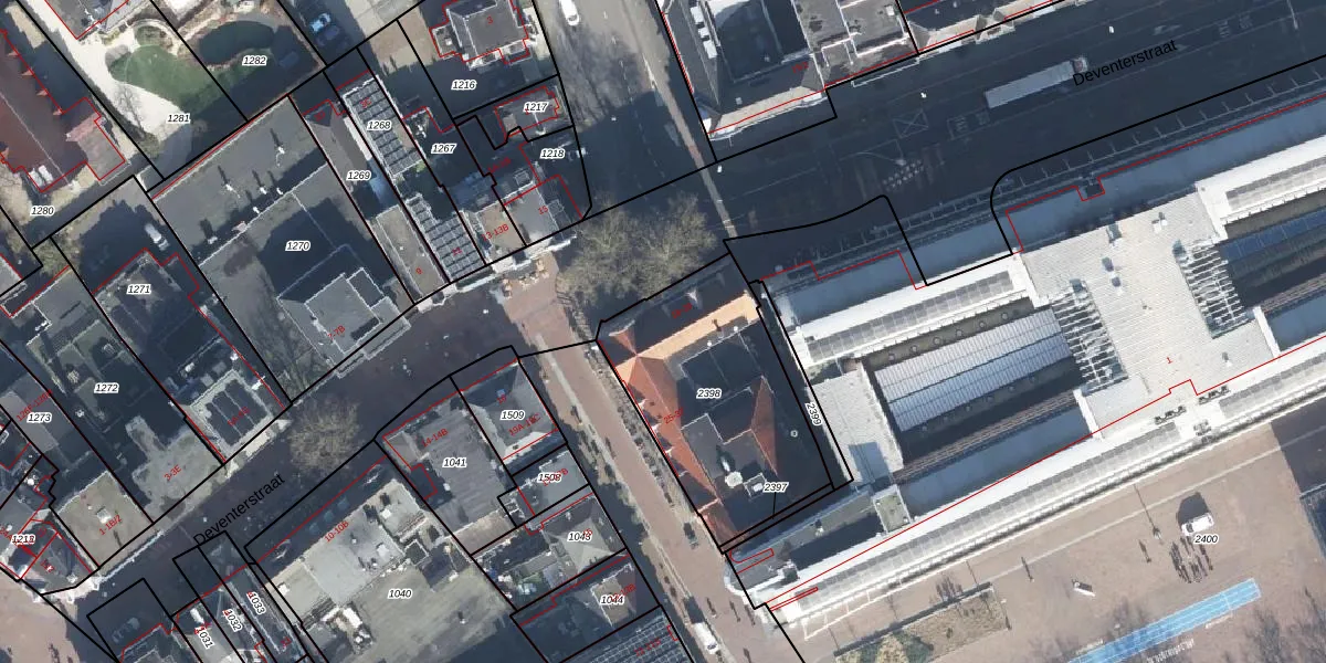 Het perceel waarop Deventerstraat 20-C staat heeft een oppervlakte van 843 m². Dit is een groot perceel. De perceeloppervlakte wordt geregistreerd door het Kadaster. Gedetailleerde informatie over de maten van dit perceel kunt u vinden in het rapport Kadastrale kaart met maatvoering van Deventerstraat 20-C.