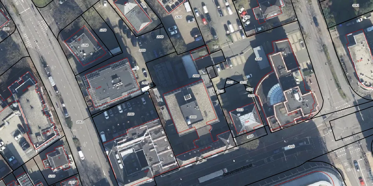 Het perceel waarop Deventerstraat 21-14 staat heeft een oppervlakte van 1962 m². Dit is een zeer groot perceel. De perceeloppervlakte wordt geregistreerd door het Kadaster. Gedetailleerde informatie over de maten van dit perceel kunt u vinden in het rapport Kadastrale kaart met maatvoering van Deventerstraat 21-14.