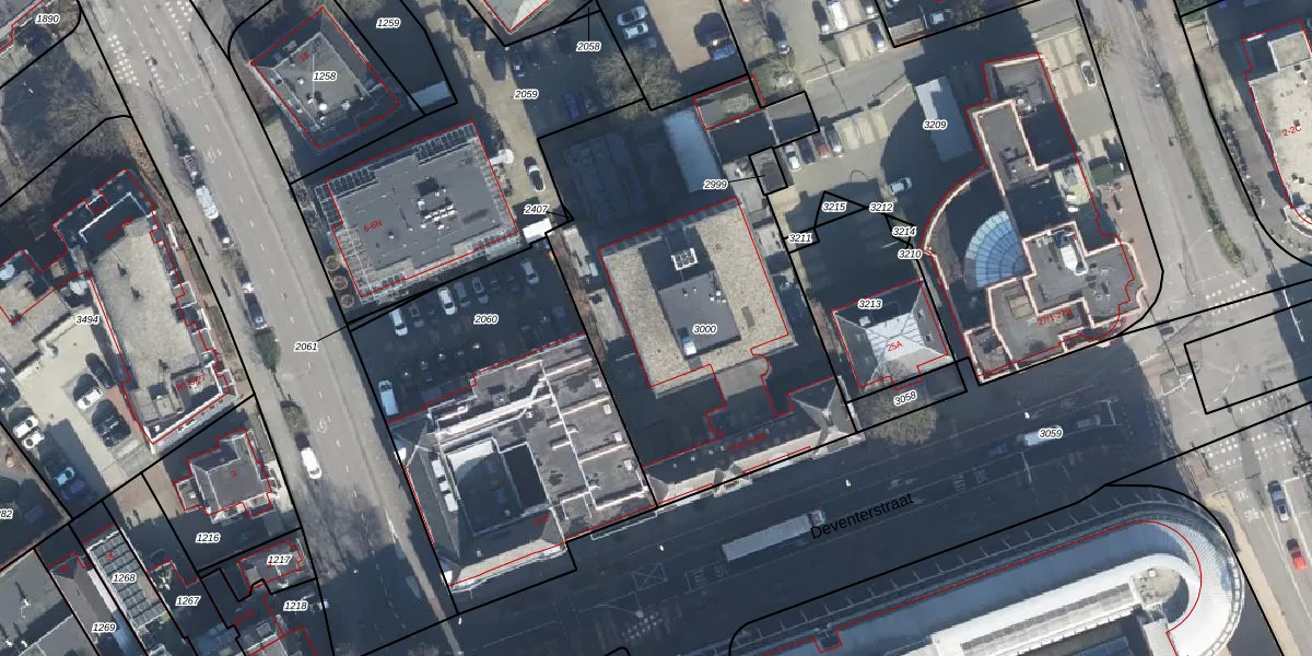 Deventerstraat 21-36 is gelegen op kadastraal perceel APD01AA3000. Deze kadastrale aanduiding is uniek en wordt gebruikt door het Kadaster om eigendomsrechten en andere zakelijke rechten vast te leggen. Het perceel maakt onderdeel uit van de kadastrale gemeente Apeldoorn.