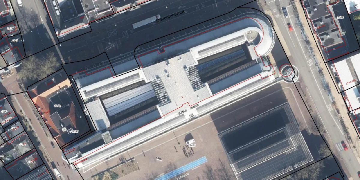 Het perceel waarop Deventerstraat 22 staat heeft een oppervlakte van 1,2 ha. Dit is een zeer groot perceel. De perceeloppervlakte wordt geregistreerd door het Kadaster. Gedetailleerde informatie over de maten van dit perceel kunt u vinden in het rapport Kadastrale kaart met maatvoering van Deventerstraat 22.