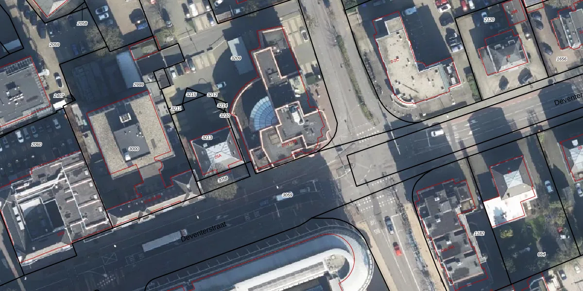 Het perceel waarop Deventerstraat 27-1 staat heeft een oppervlakte van 2882 m². Dit is een zeer groot perceel. De perceeloppervlakte wordt geregistreerd door het Kadaster. Gedetailleerde informatie over de maten van dit perceel kunt u vinden in het rapport Kadastrale kaart met maatvoering van Deventerstraat 27-1.