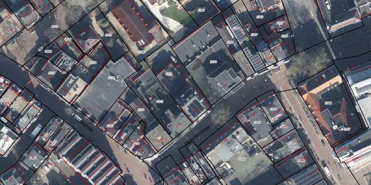 Het perceel waarop Deventerstraat 5-E staat heeft een oppervlakte van 645 m². Dit is een groot perceel. De perceeloppervlakte wordt geregistreerd door het Kadaster. Gedetailleerde informatie over de maten van dit perceel kunt u vinden in het rapport Kadastrale kaart met maatvoering van Deventerstraat 5-E.