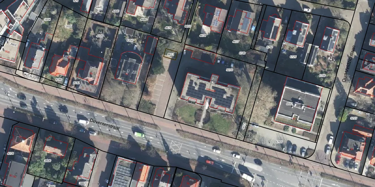 Het perceel waarop Deventerstraat 65-B staat heeft een oppervlakte van 1647 m². Dit is een zeer groot perceel. De perceeloppervlakte wordt geregistreerd door het Kadaster. Gedetailleerde informatie over de maten van dit perceel kunt u vinden in het rapport Kadastrale kaart met maatvoering van Deventerstraat 65-B.