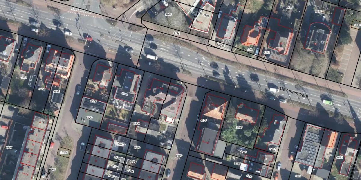 Het perceel waarop Deventerstraat 76 staat heeft een oppervlakte van 481 m². Dit is een groot perceel. De perceeloppervlakte wordt geregistreerd door het Kadaster. Gedetailleerde informatie over de maten van dit perceel kunt u vinden in het rapport Kadastrale kaart met maatvoering van Deventerstraat 76.