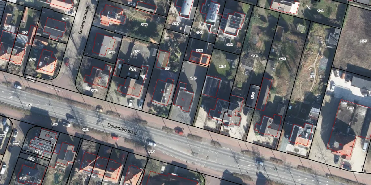 Het perceel waarop Deventerstraat 81 staat heeft een oppervlakte van 461 m². Dit is een groot perceel. De perceeloppervlakte wordt geregistreerd door het Kadaster. Gedetailleerde informatie over de maten van dit perceel kunt u vinden in het rapport Kadastrale kaart met maatvoering van Deventerstraat 81.