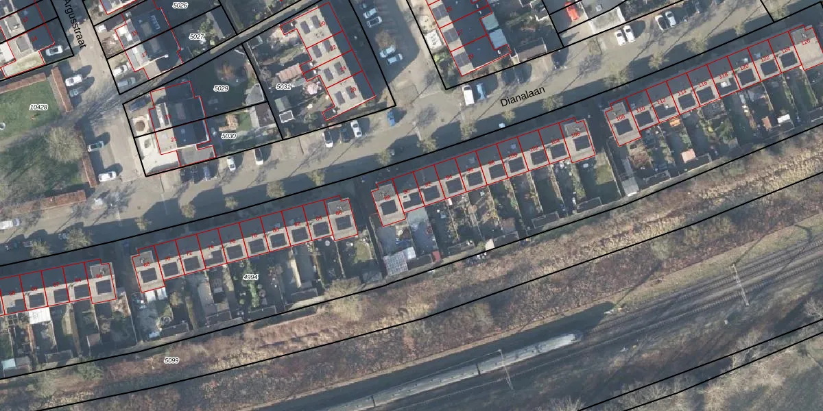 Het perceel waarop Dianalaan 90 staat heeft een oppervlakte van 8210 m². Dit is een zeer groot perceel. De perceeloppervlakte wordt geregistreerd door het Kadaster. Gedetailleerde informatie over de maten van dit perceel kunt u vinden in het rapport Kadastrale kaart met maatvoering van Dianalaan 90.