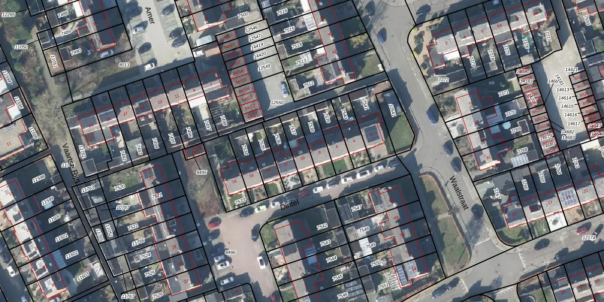 Gebruik de zoekbalk of klik op een perceel voor informatie over de adressen binnen dit perceel.