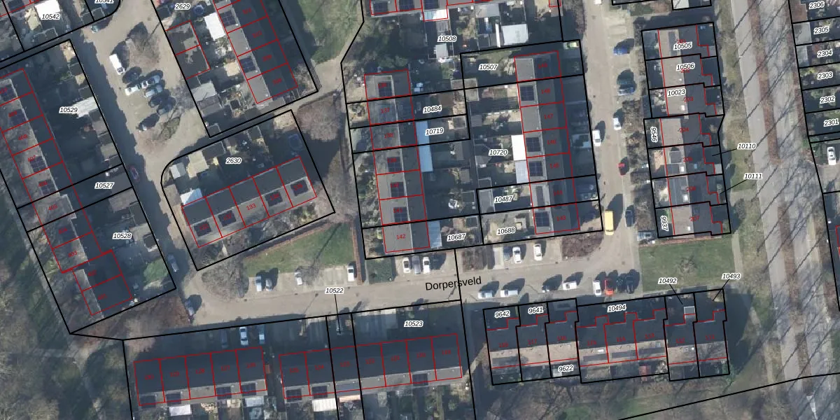 Het perceel waarop Dorpersveld 141 staat heeft een oppervlakte van 1194 m². Dit is een zeer groot perceel. De perceeloppervlakte wordt geregistreerd door het Kadaster. Gedetailleerde informatie over de maten van dit perceel kunt u vinden in het rapport Kadastrale kaart met maatvoering van Dorpersveld 141.
