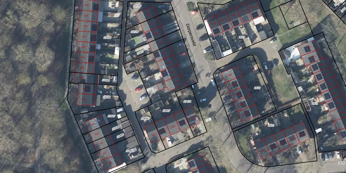 Het perceel waarop Dorpersveld 601 staat heeft een oppervlakte van 1338 m². Dit is een zeer groot perceel. De perceeloppervlakte wordt geregistreerd door het Kadaster. Gedetailleerde informatie over de maten van dit perceel kunt u vinden in het rapport Kadastrale kaart met maatvoering van Dorpersveld 601.