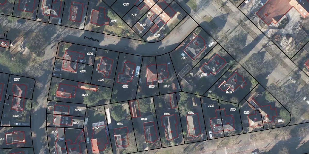 Het perceel waarop Driehoek 3 staat heeft een oppervlakte van 328 m². Dit is een groot perceel. De perceeloppervlakte wordt geregistreerd door het Kadaster. Gedetailleerde informatie over de maten van dit perceel kunt u vinden in het rapport Kadastrale kaart met maatvoering van Driehoek 3.