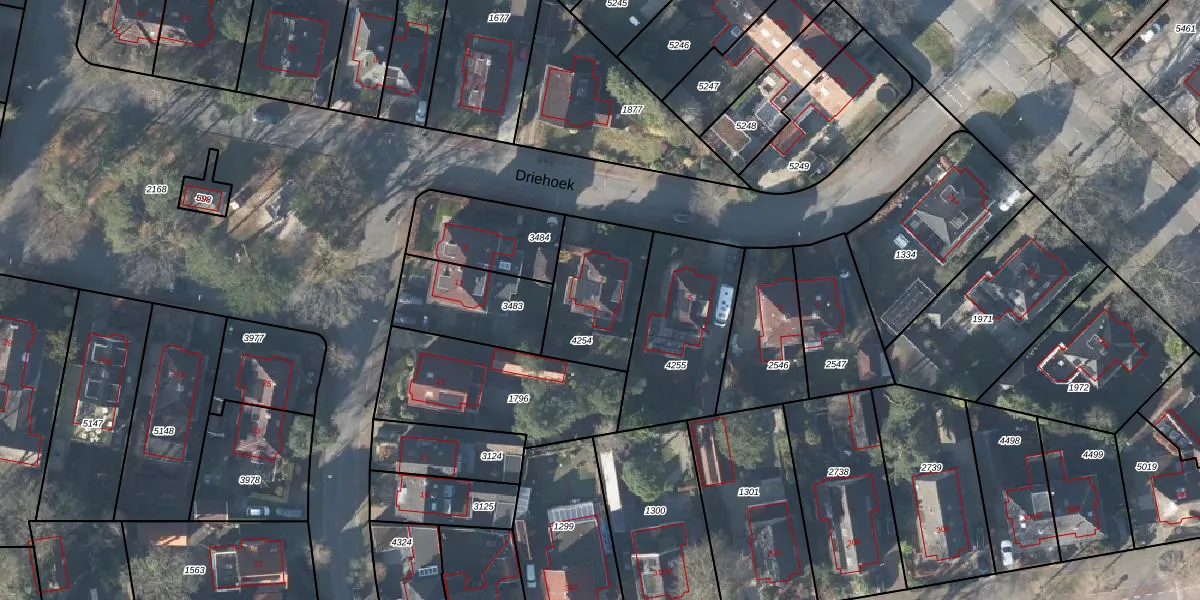 Het perceel waarop Driehoek 7 staat heeft een oppervlakte van 350 m². Dit is een groot perceel. De perceeloppervlakte wordt geregistreerd door het Kadaster. Gedetailleerde informatie over de maten van dit perceel kunt u vinden in het rapport Kadastrale kaart met maatvoering van Driehoek 7.